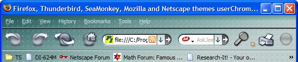 The theme subskin technology was made possible through the contributions of Bamm Gabriana <bamm AT astronomy DOT com DOT ph> who pioneered its use in early Mozilla development. The design takes advantage of the CSS @import rule which allows one to import another CSS stylesheet file from within another stylesheet file. Since the userChrome.css file is a stylesheet file that is accessible to the user, it can also incorporate the CSS @import rule. Therefore, if a theme designer provides alternate theme design stylesheet files within their theme that normally do not get accessed, a user can choose to implement a subskin simply by adding the subskin's reference within their userChrome.css file. IMPORTANT: care must be taken to insure that these @import rules are added before any @namespace rule.